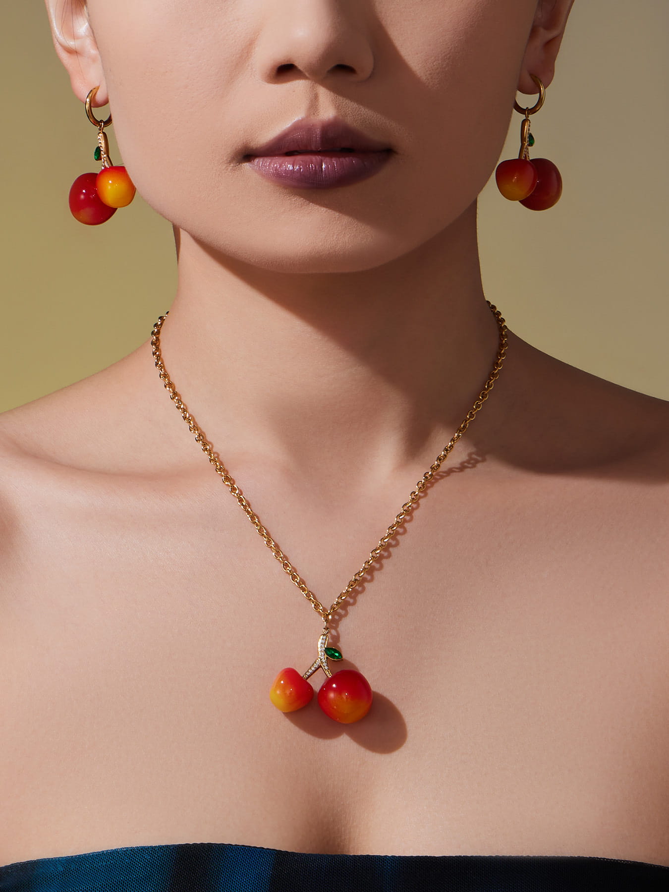 The playful cherry pendant is a symbol of youthful joy and sweet moments. Its vibrant resin colors catch the eye, while the polished stainless steel chain ensures durability. Pair this necklace with matching cherry-inspired earrings or stack with other [stainless steel necklaces](https://oumaikajewelry.com/collections/necklaces) for a stylish layered effect.