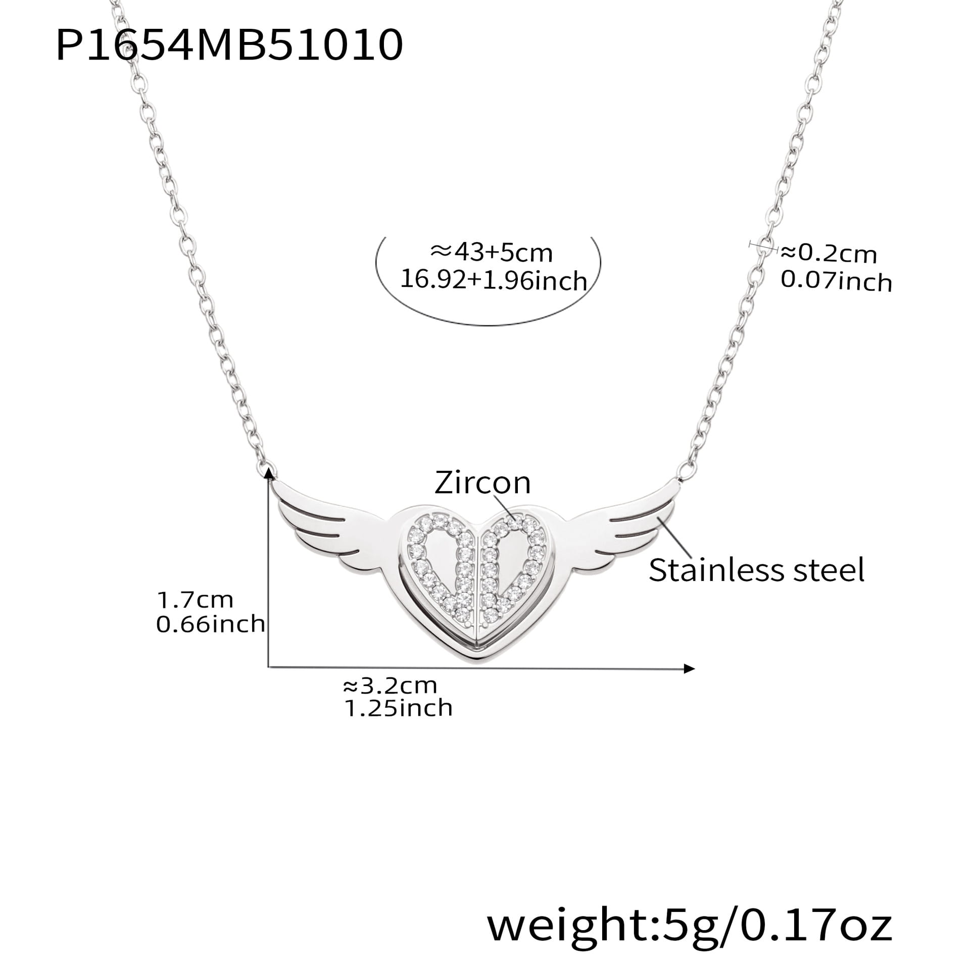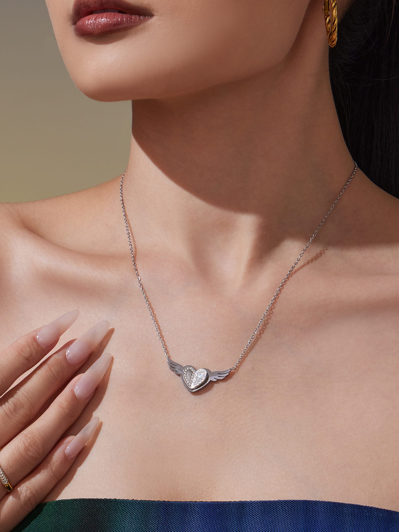 | Design | Guardian Wings Diamond Heart Clavicle Stainless Steel Necklace |