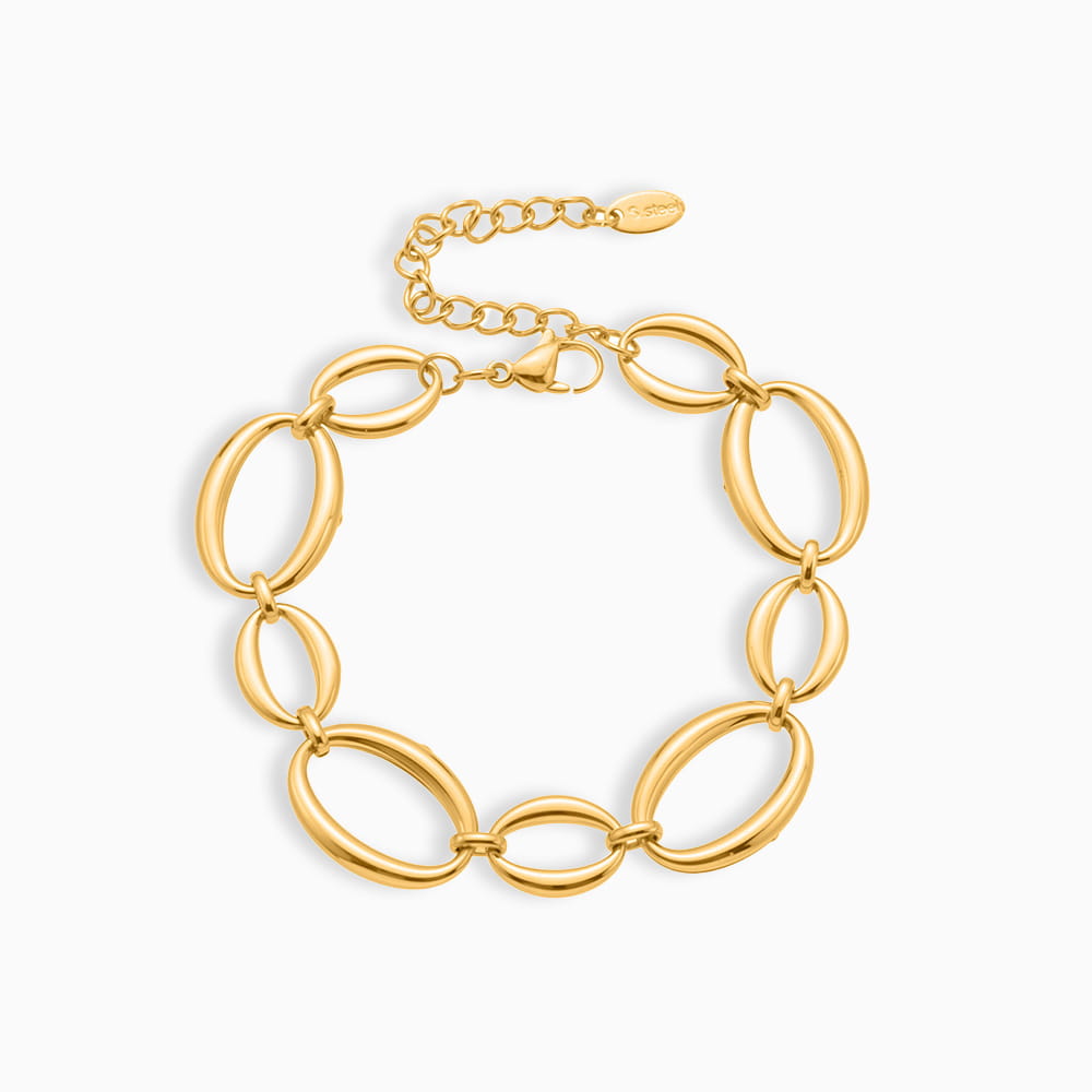The smooth oval links of this two-tone stainless steel bracelet reflect light beautifully, creating a sense of quiet confidence. Its balanced gold and silver palette makes it easy to pair with both cool and warm tones — perfect for layering with other stainless steel bracelets or matching with our Two-Tone Oval Link Necklace for a cohesive look.